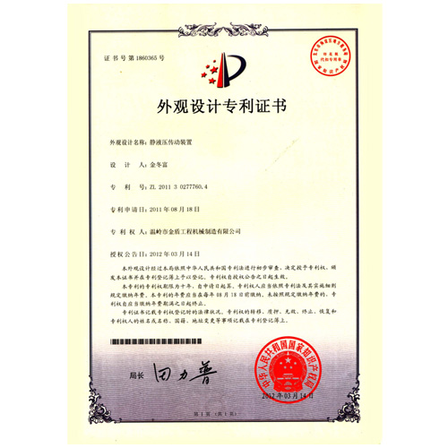 外觀設(shè)計專利證書01